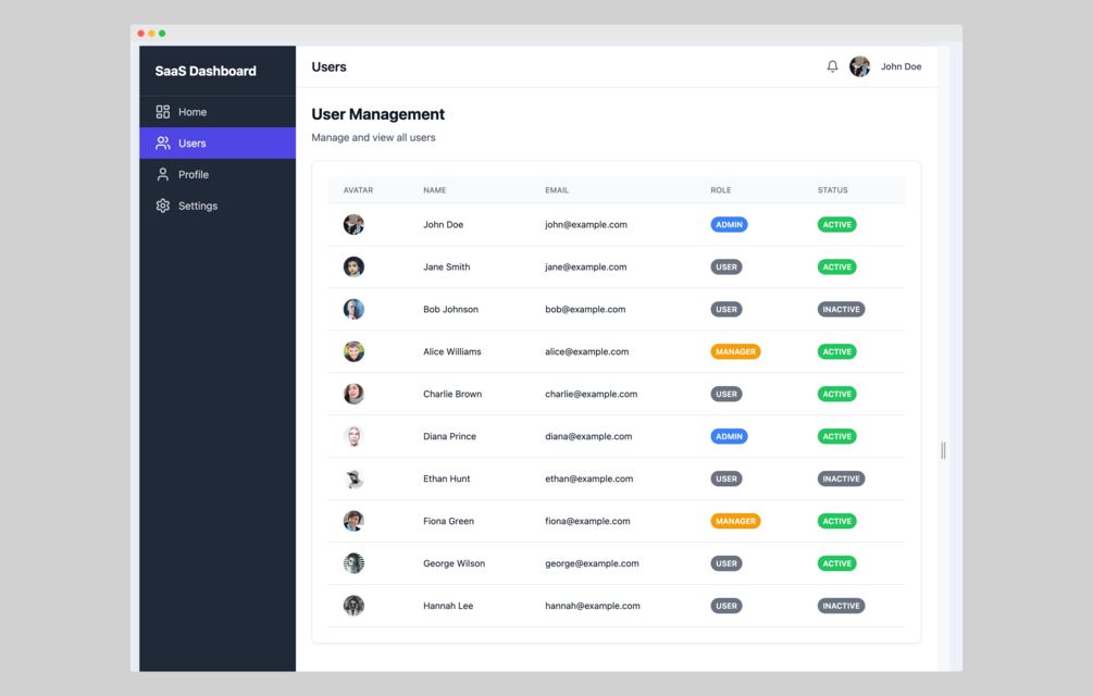 - π 5 Pre-built Pages - Dashboard, User Management, Profile, Settings, and Login